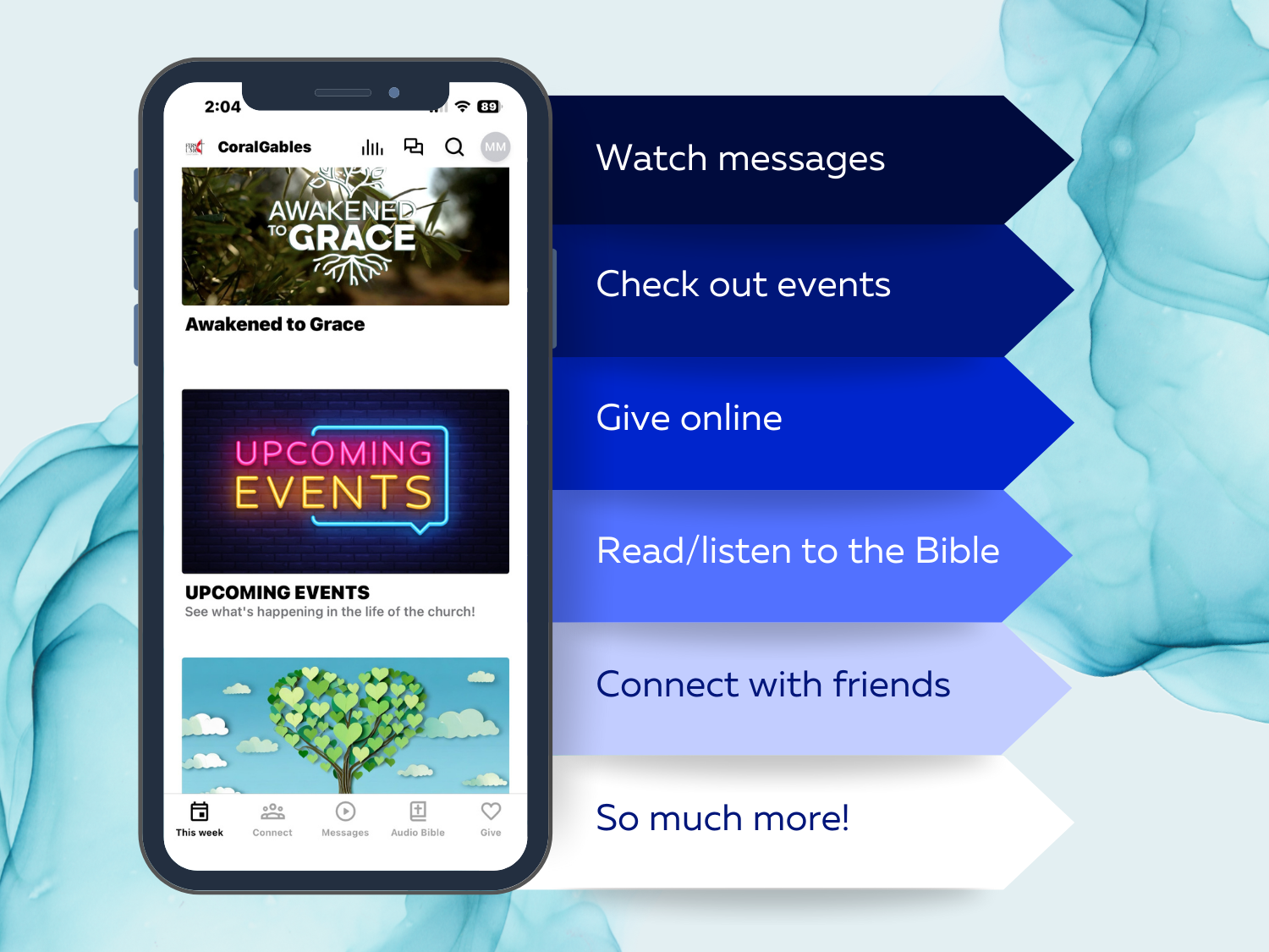 First Coral Gables is excited to bring you an incredibly useful application for your phone or mobile device! With this app, you can see every single event, concert, class and activity. Updated daily, this is the best resource for finding out what is going on in the life of the church! You can also watch the live-streamed service and past messages, connect with others, read or listen to the Bible, give online, and so much more! It’s a convenient way to “church”! Download it today!